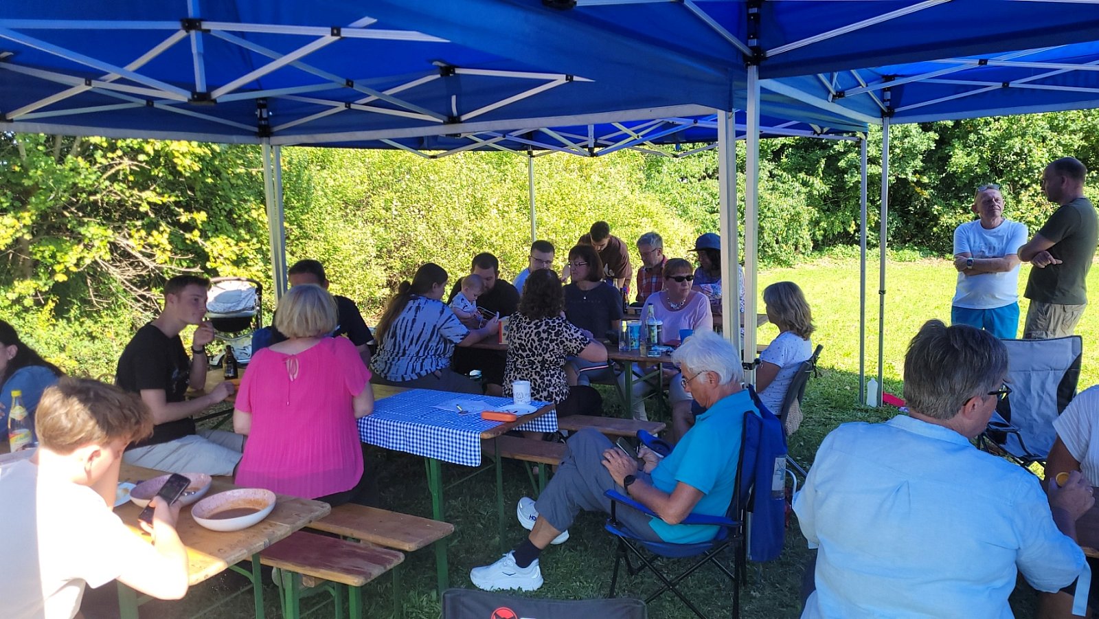 Während sich die Erwachsenen unterhalten spielt die Kart-Jugend
